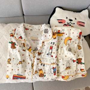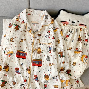 源头工厂秋季长袖长裤睡衣女云朵棉韩版卡通甜美ins风开衫套装