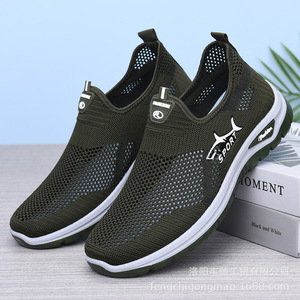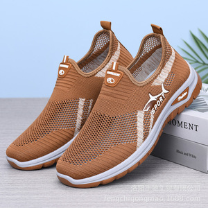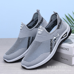 外贸飞织大码男鞋2025跨境TEMU代贴鲨鱼休闲鞋软底透气网面运动鞋