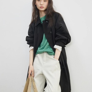 英伦风薄款翻领风衣2025秋季新款简约宽松通勤中长款外套外衣女