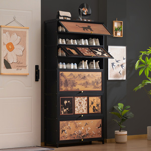 家用门口鞋柜高款立式入户柜一体柜门外走廊用极窄入户翻斗大容量
