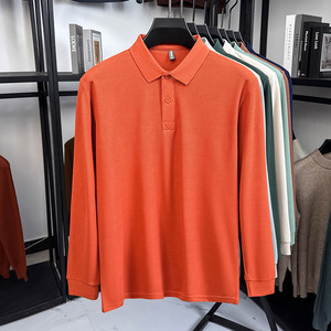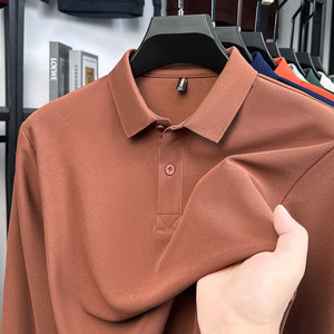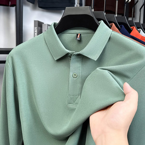 秋季新款纯棉男士长袖polo衫2025中年时尚休闲纯色polo男打底衫