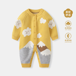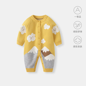 婴儿连体衣2025秋装衣服男宝宝满月针织套装秋冬款幼儿小月龄毛衣