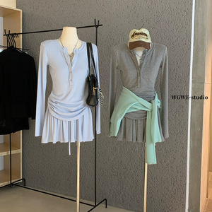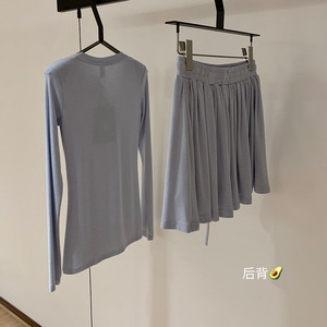 WGWE6911简约气质慵懒休闲舒适镂空百搭防晒长袖T恤+半身短裙套装