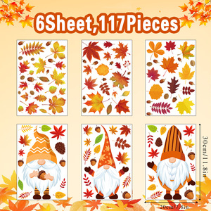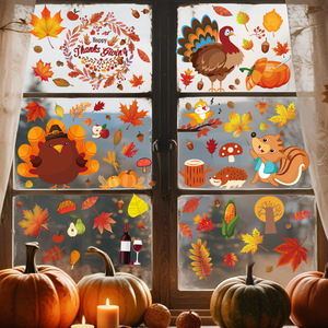 跨境爆款感恩节火鸡枫叶小矮人静电玻璃贴纸节日商场橱窗布置装饰