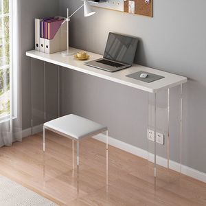 亚克力透明简约岩板书桌办公桌子双人长条靠墙工作台式电脑桌