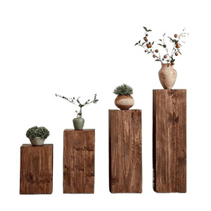*侘寂风方形木墩子坐凳花架原木树桩茶几边几复古自然实木底座摆