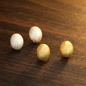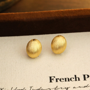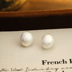 S925银简约几何椭圆豆豆拉丝耳环女ins风轻奢气质时尚小球耳饰