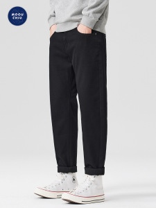沐丘男装∣2025秋冬新款锥形牛仔裤男直筒弹力痞帅显瘦九分长裤子