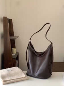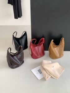 跨境高级感油蜡皮大容量托特包女2025新款休闲单肩斜挎水桶通勤包
