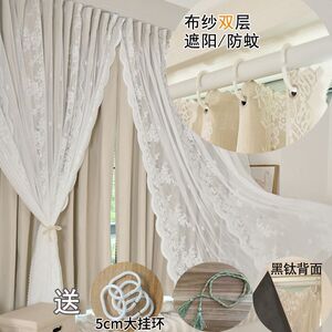 双层蕾丝纱+布-魔术贴款全遮光【黄昏米色】