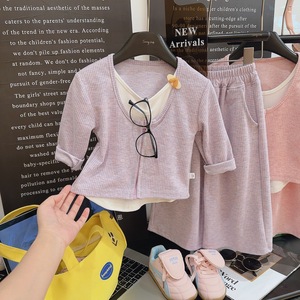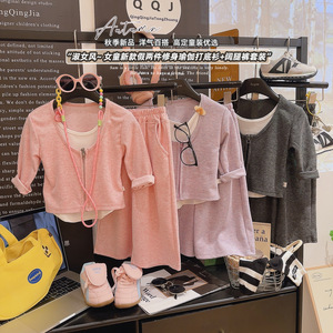 女童韩系拼色春秋新款运动风套装中大童撞色休闲长袖上衣裤子预售