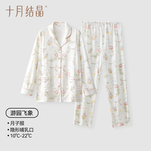 十月结晶孕妇哺乳睡衣产后静谧花园胸垫款纯棉月子服家居服秋冬季