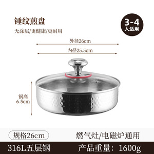 食品级加厚316不锈钢煎盘煎鸡蛋家用不粘锅煎锅锤纹平底锅煎牛排
