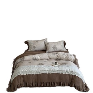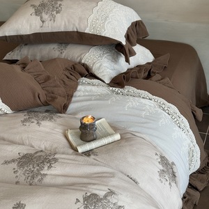 法式复古花卉全棉双层纱数码印花重工绣棉质花边被套床品套件寝具