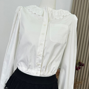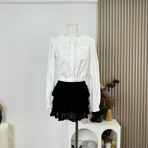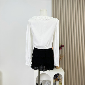 贵女法式蕾丝荷叶边白色衬衫女早秋上衣短裙套装