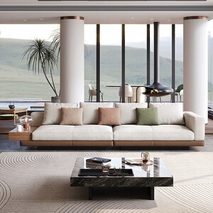 康纳利布艺沙发客厅现代轻奢高端棉麻意式极简直排沙发组合中古风