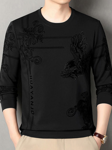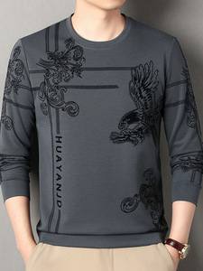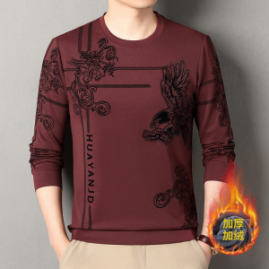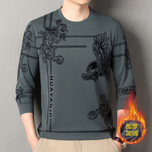 跨境男士卫衣加绒加厚植绒长袖t恤秋冬新款圆领休闲时尚印花上衣