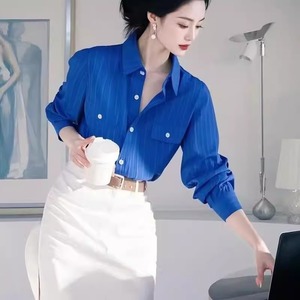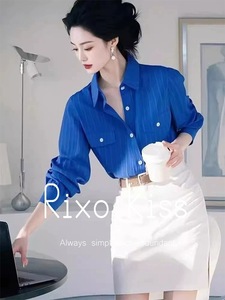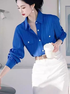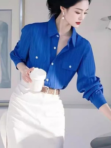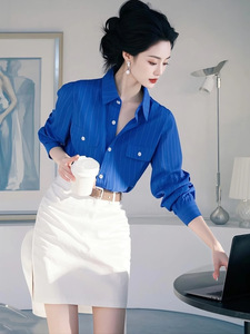 早秋穿搭盐系轻熟气质高级感蓝色衬衫半身裙两件职业套装2025女装