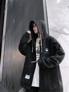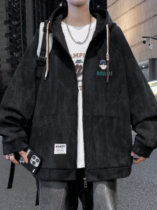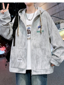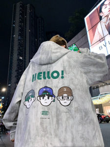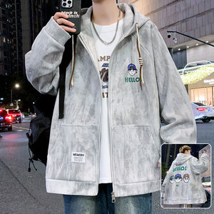 2025新款春秋季扎染废土风连帽开衫卫衣男潮流宽松加肥加大码外套