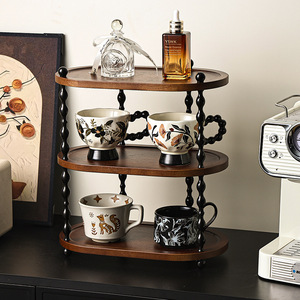 橡木中古风桌面实木咖啡杯子收纳架高级感轻奢家用台面双层置物架