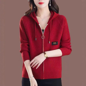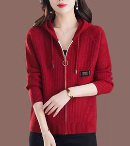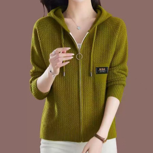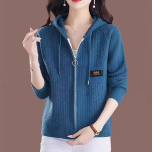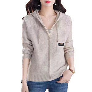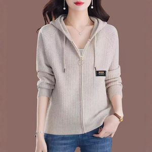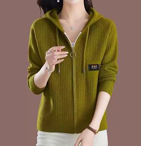 跨境2025新款毛衣女秋冬宽松拉链连帽加卫衣时尚外搭纯色针织开衫