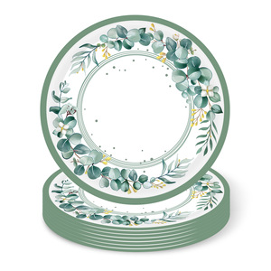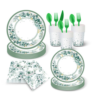 新款尤加利金色baby树叶鼠尾草纸杯纸盘纸巾婴儿淋浴派对餐具套装
