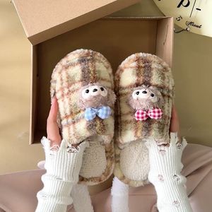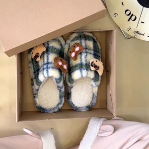 韩版雪莉玫毛毛拖鞋女外穿2025冬季新款居家保暖加绒防滑包头棉拖