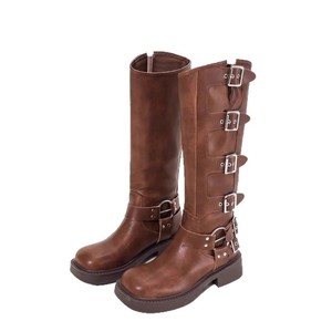 厚底骑士靴女2025新款夏秋季不过膝棕色西部牛仔川西高筒长筒鞋子