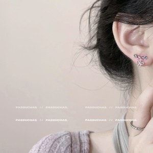 甜美彩色锆石蝴蝶结耳钉女小众独特设计感优雅个性绝美百搭耳饰