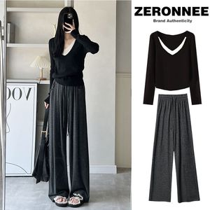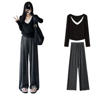 秋冬季穿搭套装女韩系百搭长袖T恤上衣ins休闲糯米裤阔腿裤两件套