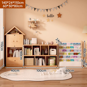 儿童书架实木芯落地一体靠墙格子柜创意收纳柜子幼儿园书柜绘本架