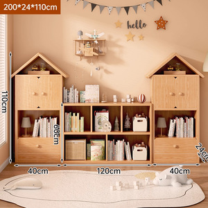 【小房子+七格柜+绘本架】屿山雪松木色200*24*110实木生态板