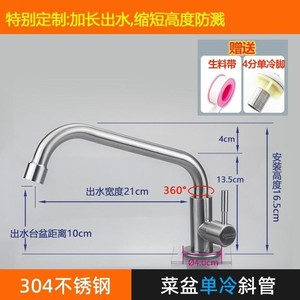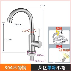小弯单冷304不锈钢厨房水槽家用洗碗洗衣池洗菜盆加长脚水龙头
