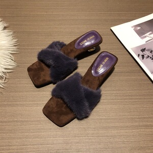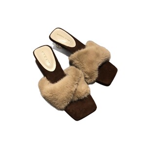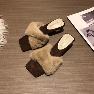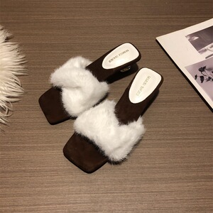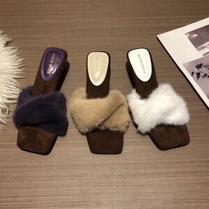 2025秋冬新款毛毛拖鞋仙女一字带豹纹细高跟凉拖鞋女外穿