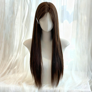 假发女前额蕾丝自然无痕中分八字几字刘海仿真发卷发长直发全头套