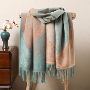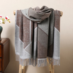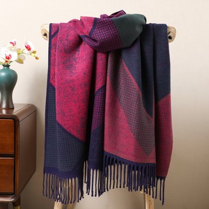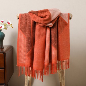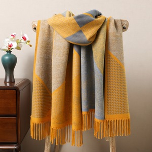 新款双面几何提花仿羊绒围巾女秋冬韩版高级感时尚百搭围脖披肩