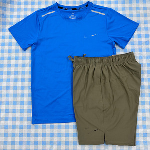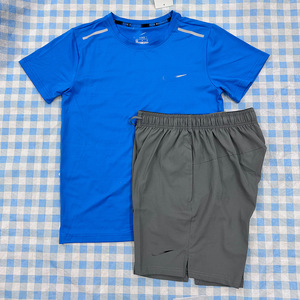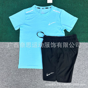 批发新款运动外贸套装健身跑步套装速干透气宽松休闲短袖短裤男装