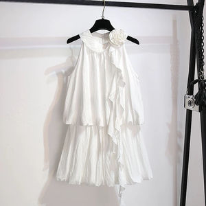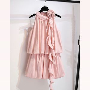 绝美薄荷绿飘带气质无袖蓬蓬花苞短裙2025夏季新款挂脖连衣裙