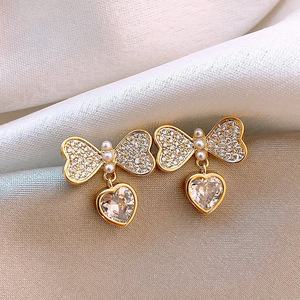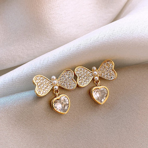 18k真金电镀银针锆石爱心蝴蝶结珍珠耳环精致耳钉轻奢高级感耳饰