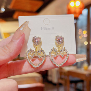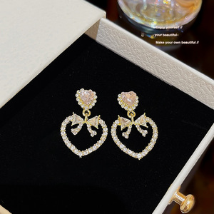 时尚爱心蝴蝶结耳环轻奢高级感耳钉925银针甜美小清新小香风耳饰