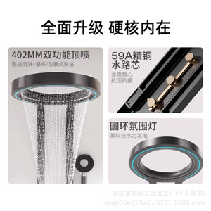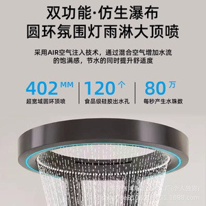 超大瀑布出水淋浴屏花洒套装家用浴室增压挂墙黑色大淋浴花洒套装