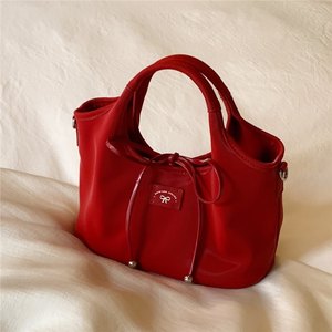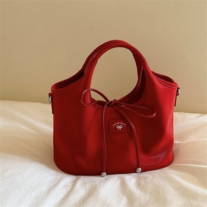 夏日丝光料托特包包女红色手提包单肩斜挎包2025绑带蝴蝶时尚百搭
