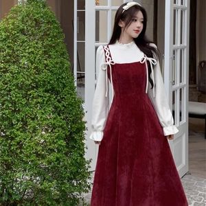 法式复古小清新假两件连衣裙秋冬2025新款显瘦气质中长款a字裙子