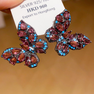 银针法式蝴蝶锆石耳环轻奢高级感耳钉气质精致时尚耳饰设计感小众