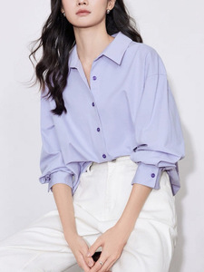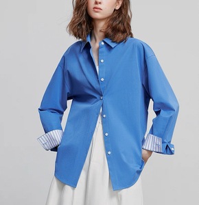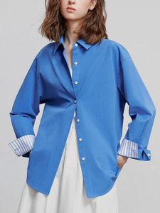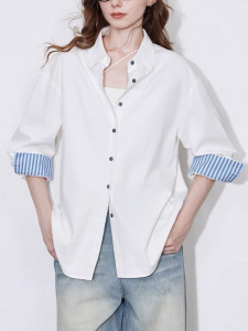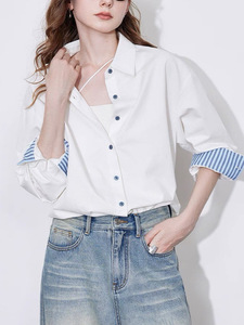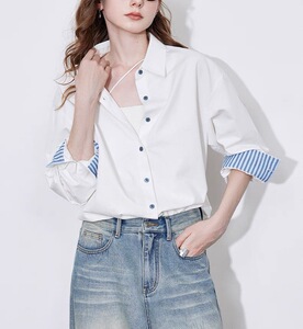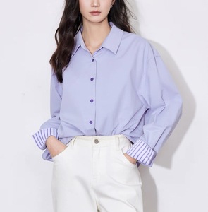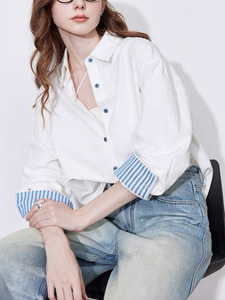 条纹翻袖衬衫女2025秋冬季新款时装通勤上衣高级感气质纯棉衬衣