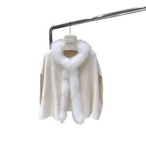 秋冬巴尔塞小富婆狐狸毛领皮草针织毛衣开衫小斗篷短款披肩外套女