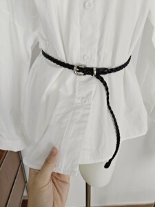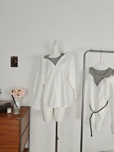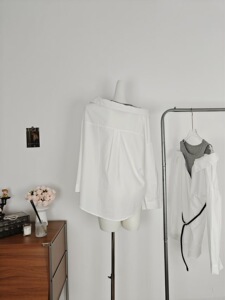 实拍实价初秋新款心机露肩休闲慵懒风衬衫裙翻领拼接设计感配腰带