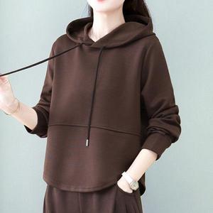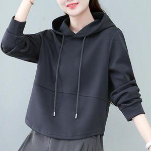 春秋季长袖连帽短款卫衣女新款不规则宽松百搭小个子高腰上衣帽衫