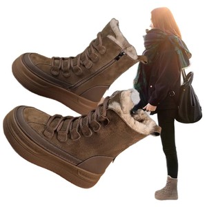 厚底皮毛一体中筒雪地靴女款2025新款冬季马丁靴加绒保暖高帮棉鞋