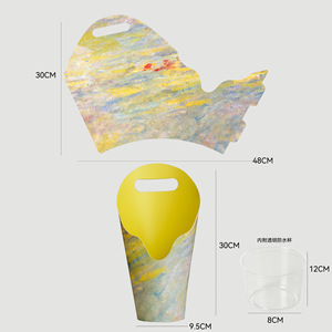 ins油画风教师节手提花盒蝴蝶兰盆栽花束包花礼物盒 向日葵包装盒